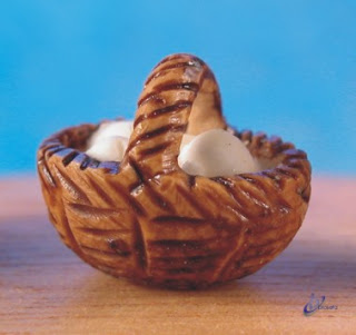 La cesta es un hueso de cereza entero.Los huevos de resina. Barnizada.